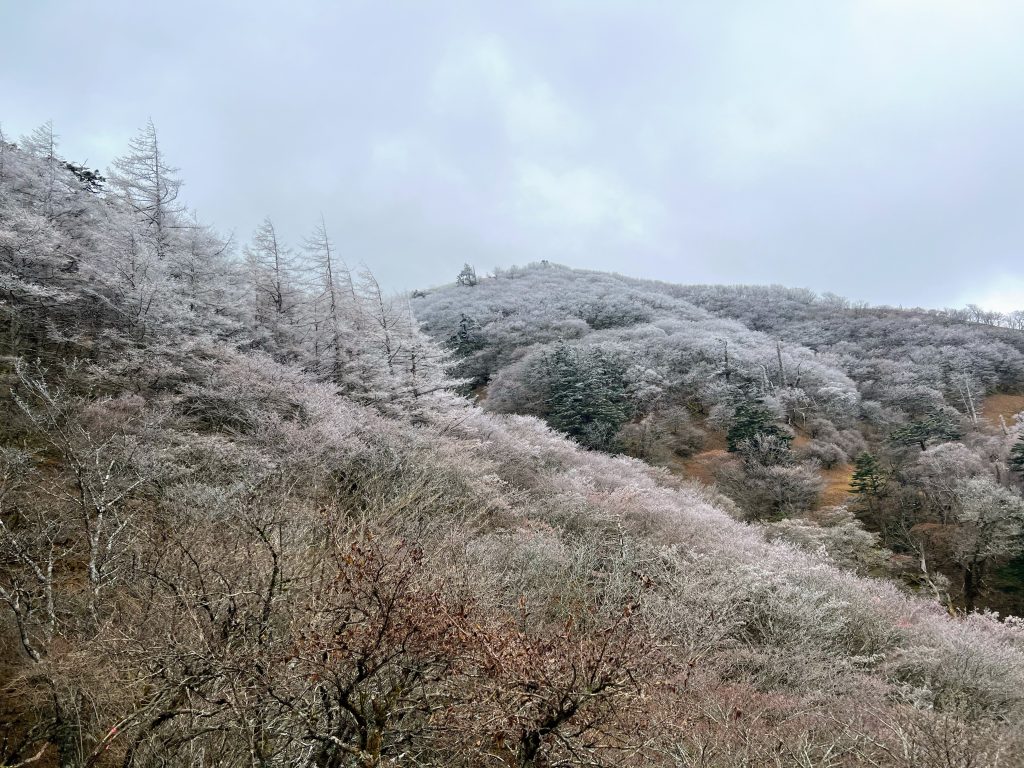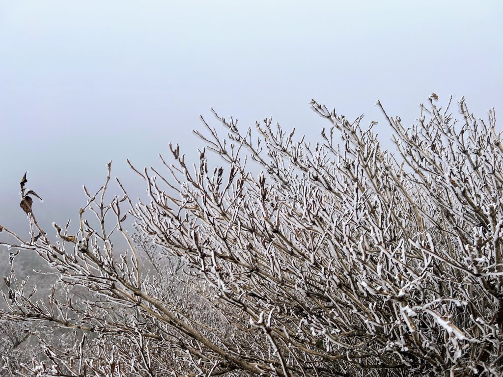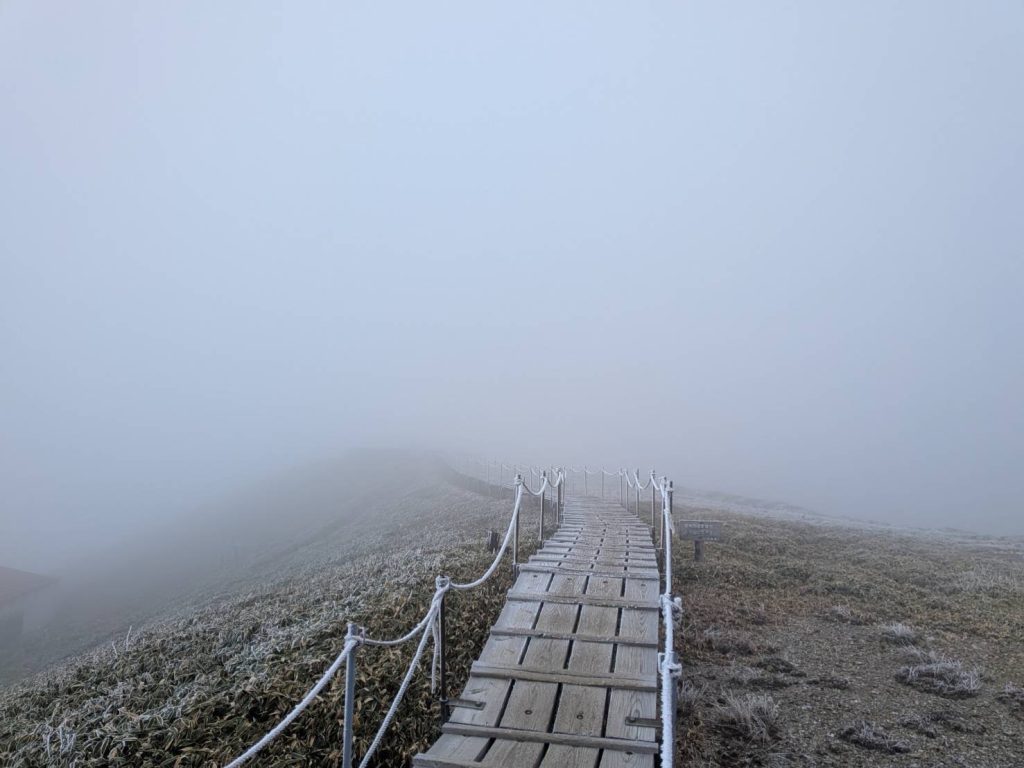 霜が降り小雪が舞い、視界は真っ白で稜線はどこ?って感じでした。