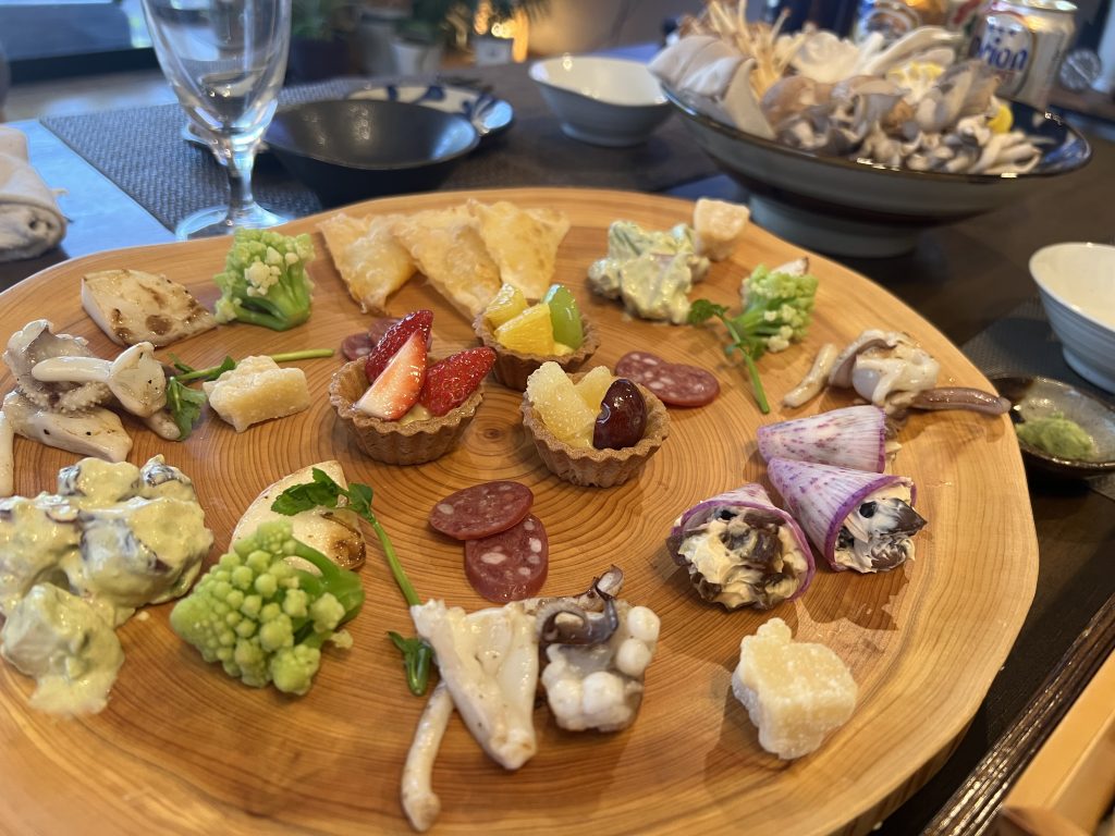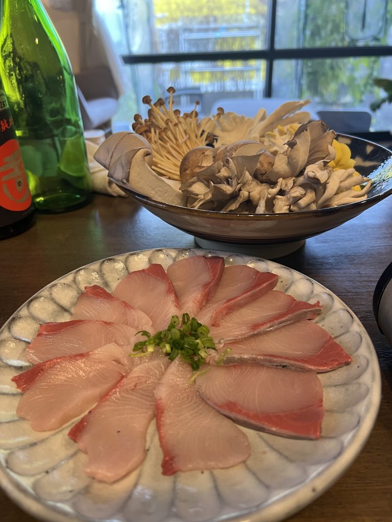 メイン料理は仕切りのある二色鍋で「火鍋」と「ぶりしゃぶ」でしたが