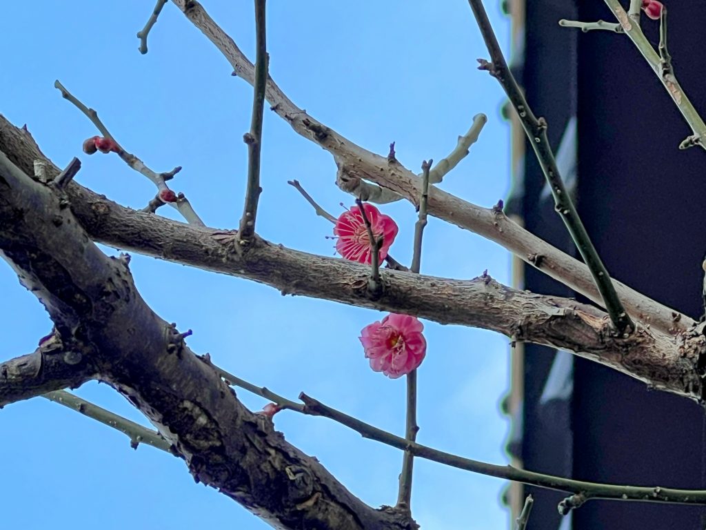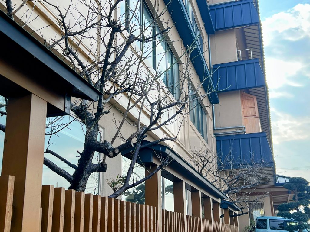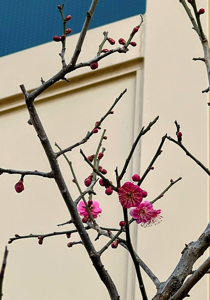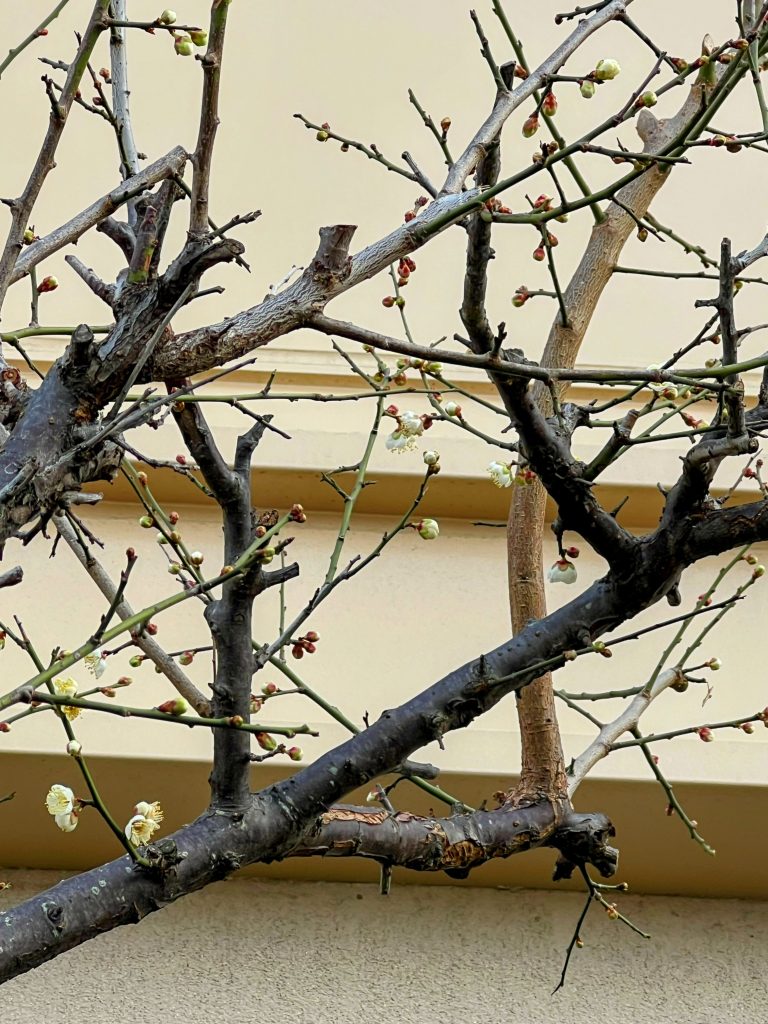 今年もお食事処の坪庭の紅梅白梅がたくさん蕾をつけ