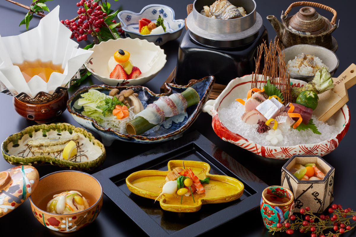 赤間料理長が心を尽くしてご用意する繊細な和会席は、味はもちろん見た目も美しく、